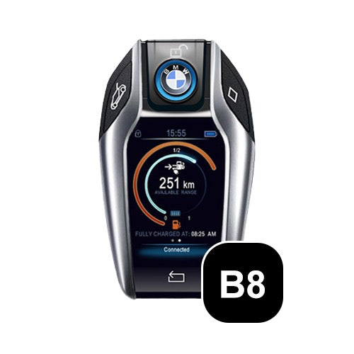 Der BMW B8 ist ein innovativer Keyless-Go Smartkey mit integriertem Farbdisplay und Touch-Bedienung. Er vereint Fahrzeugzugang, Komfort und Kontrolle auf höchstem Niveau. Das großzügige Display zeigt dir z. B. den Ladestand bei E-Modellen, verbleibende Reichweite, Türstatus oder den aktuellen Verriegelungszustand – alles auf einen Blick, ohne ins Fahrzeug zu steigen.