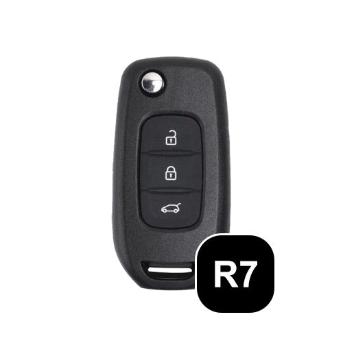 Beim R7 handelt es sich um einen Renault 3-Tasten Klappschlüssel mit mechanischem Schlüsselbart. Dieser klassische Fahrzeugschlüssel wird manuell ins Zündschloss gesteckt, um das Fahrzeug zu starten.
