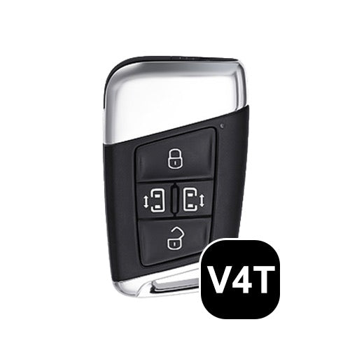 Der V4T ist ein Keyless-Go Smartkey der Volkswagen-Gruppe, wie er bei VW und SEAT zum Einsatz kommt. Er verfügt zusätzlich zu den Standardfunktionen über zwei separate Tasten zur Steuerung der elektrischen Seitenschiebetüren – speziell bei Fahrzeugen mit komfortabler Türautomatik.