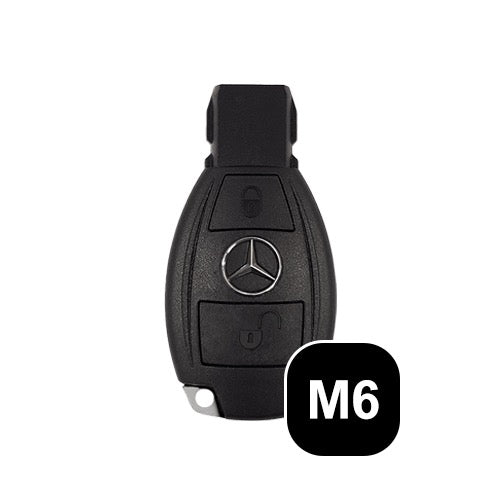 Der Mercedes-Benz (M6) ist die kompakte Variante des bewährten M7-Schlüssels – mit zwei Funktionstasten: Öffnen und Schließen. Auch dieser klassische Schlüssel verfügt über ein mechanisches Schlüsselende („Stopfen“), das zum Starten direkt ins Zündschloss eingeführt wird.